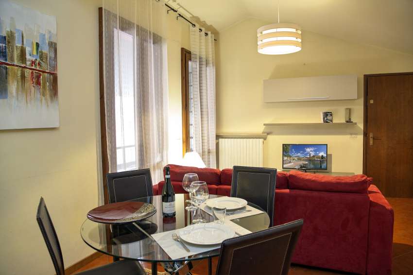 Sul terrazzo delle camere ci sono lettini prendisole, ombrellone, tavolo e sedie. L'hotel Alighieri dispone anche di una bella terrazza, anch'essa attrezzata. Al mattino viene servita una gustosa colazione a buffet. L'hotel ha un parcheggio interno. I nostri amici animali sono i benvenuti. Per chi preferisce la soluzione in appartamento, l'hotel mette a disposizione ambienti ben curati di circa ...
