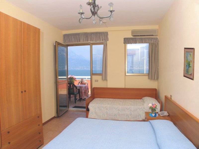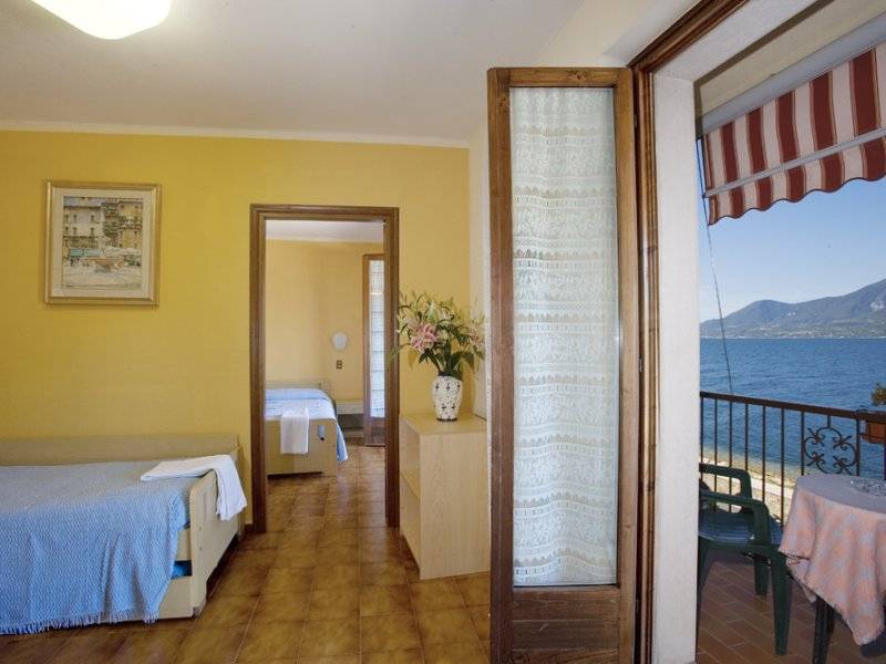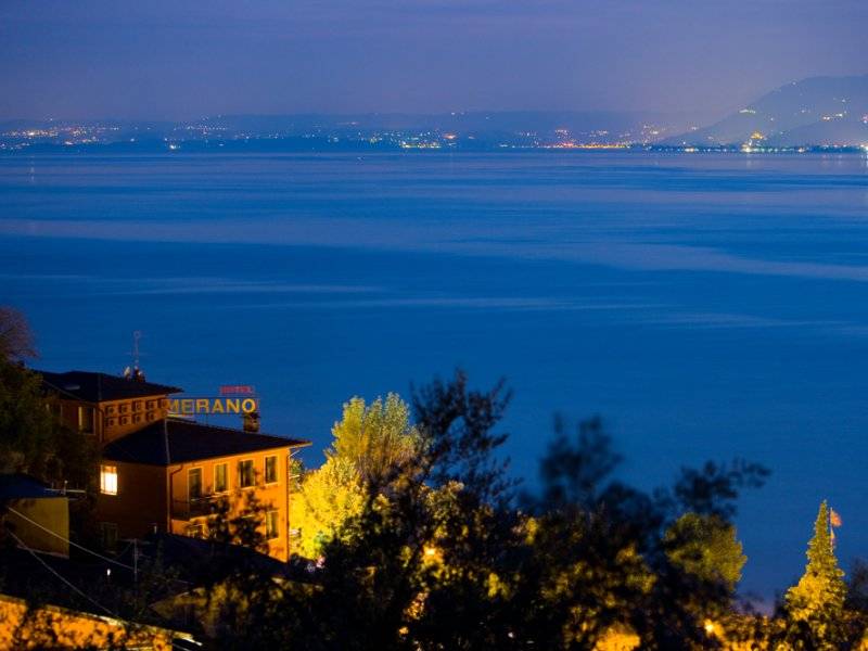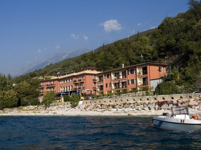 L'Hotel Merano è situato in un paesaggio suggestivo tra il Lago di Garda e le pendici del Monte Baldo, proprio a 15 metri dalle rive del Lago, affacciato sulla spiaggia. Si trova a soli 3 km da Castelletto di Brenzone e 800 metri da Pai, antico paese di pescatori. Ambiente tranquillo, condotto dalla famiglia Boschelli, è dotato di camere e appartamenti con tutti i comfort. Le camere Vista Lago sono le più ricercate: insonorizzate e con ampio balcone o terrazzo, offrono una stupenda vista sul Lago di Garda. Sono dotate di aria condizionata, bagno privato con doccia e asciugacapelli, Tv satellitare, telefono, frigo-bar a richiesta, cassetta di sicurezza. Le camere Lato Monte hanno invece un piccolo balcone senza vista (0,80 mq). L'Hotel Merano dispone anche di appartamenti: bilocali (circa mq. 45) per 2/4 persone, con 1 camera da letto e zona soggiorno con divano letto; oppure monolocale (circa 35 mq) per 2 persone, composto da reparto notte a 2 piazze ... e zona soggiorno con divano letto. Entrambi hanno cucina, balcone con vista lago, bagno privato con doccia. Sono dotati di aria condizionata, cucina elettrica, frigorifero, televisione, cassaforte, lenzuola e asciugamani, acqua calda. L'Hotel dispone di una bella piscina 6x12 metri, coperta e riscaldata a 27°C; a pochi passi la spiaggia con sedie a sdraio; inoltre ci sono l'idromassaggio e una piccola sala fitness. Sulla stupenda Terrazza-Bar e Terrazza-Ristorante, affacciata sul Lago di Garda, potrete gustare i nostri famosi Cocktail e la sera godervi la cena. A vostra disposizione ci sono anche il tavolo da ping-pong, l'ascensore, il parcheggio, city-bike gratuite, Internet Wi-Fi gratuito durante le ore diurne.