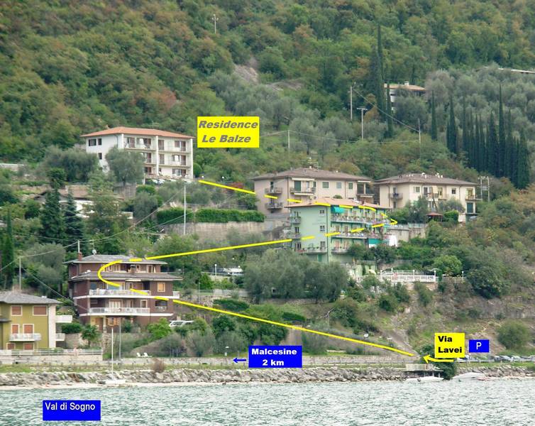 Il Residence Le Balze si affaccia come una terrazza panoramica sulle acque azzurre del Lago di Garda. Si trova in una magnifica posizione di fronte al Golfo di Val di Sogno, immerso nella quiete degli ulivi sulle pittoresche colline. Il Residence si trova a pochi metri dalla spiaggia, a soli 2,5 km dal centro di Malcesine. La struttura comprende 10 ampi appartamenti, tutti completamente attrezzati e tutti con balcone vista lago. La bellissima piscina appartenente al Residence è un ottimo luogo per rilassarsi e offre un panorama incantevole sul lago. Gli appartamenti sono di diverse tipologie e sono tutti dotati di un ampio balcone vista lago. Sono arredati in modo semplice ma confortevole. Il Monolocale, ampio 35 mq, ha un soggiorno con cucina e divano letto, bagno con doccia. Il Bilocale, di 50 mq, ha una camera da letto matrimoniale, un soggiorno con cucina e divano letto, bagno con doccia. L'appartamento Trilocale, ampio 60 mq, ha 2 camere da ... letto matrimoniali, un soggiorno con cucina e divano letto, bagno con doccia. Il Residence Le Balze mette a disposizione degli ospiti il suo bel giardino con sedie a sdraio e la terrazza panoramica vista lago. Ci sono inoltre: parcheggio privato, possibilità di parcheggio per carrelli e tavole da surf, boa (a richiesta); animali ammessi. Il Residence si trova a 500 metri dal supermercato, dalla banca e da diversi ristoranti. A soltanto 150 metri dalle Balze il lago offre delle possibilità eccellenti di vela e windsurf; una scuola di vela e di altri sport acquatici si trova a 500 metri di distanza.